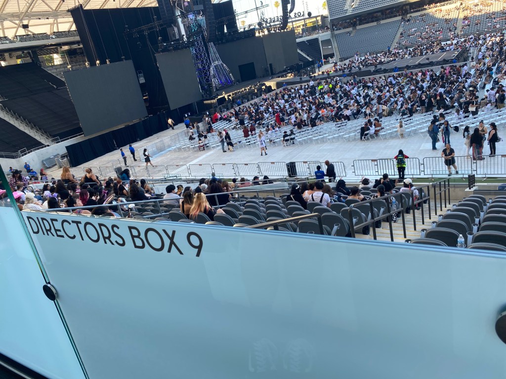 I will be discussing more about the stadium soon, but I just wanted to say there was so many lines, I got confused on where to go. But literally the lines went so fast I was shocked. Get parking passes early if you can. And if you’re not going to drive there’s many ways to transport there. LA in general is pretty good at that. I just recommend learning the streets a bit before going. BMO is located in a great place in terms of places around it. I mean the freeway isn’t far from there (there site says 1 block!) so it’s easy to get where you’re going!